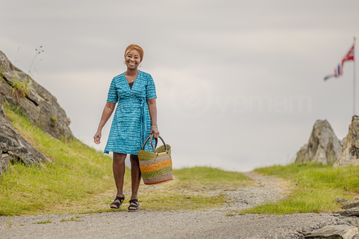 Håndlaget og miljøvennlig kurv av elefantgress. Håndtak av geiteskinn. Flettet av vårt kvinnekooperativ i Ghana. Kan brukes til både hverdag og fest. Til dekorasjon i stuen. Til strikketøyet. Perfekt gave til en rund dag.