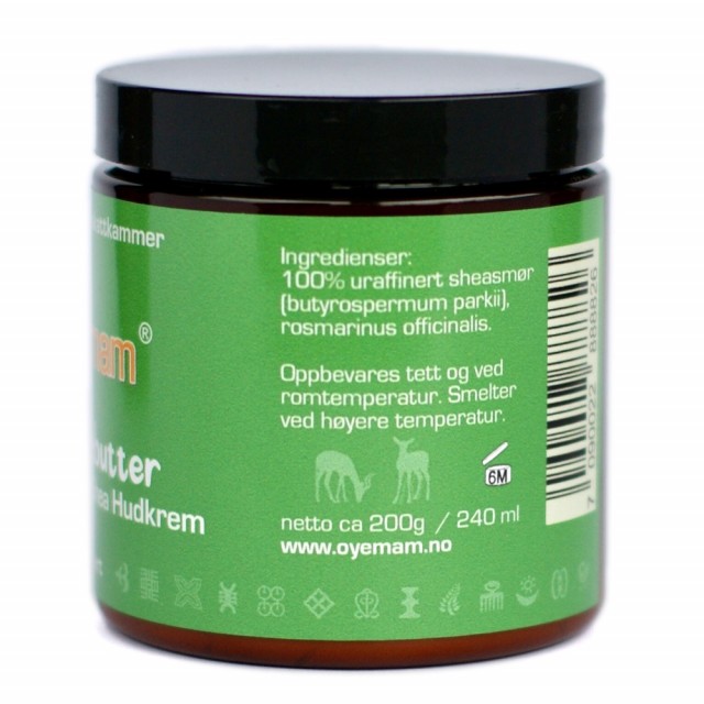 La Oyémams Pure sheabutter pleie huden din med næringsstoffer fra naturens eget skattkammer. Brukes på hele kroppen, ansikt, hender og føtter. Gjør huden myk, glatt og smidig. For beste resultat, brukes rett etter bad eller dusj. Varm litt i hendene og smør på huden.